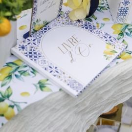 Laissez-vous bercer par la douceur de vivre des côtes méditerranéennes. Bleu azur, citrons et farniente sont l'essence même de cette gamme. Remerciez vos convives avec de petites attentions en remplissant ces contenants de douceurs.