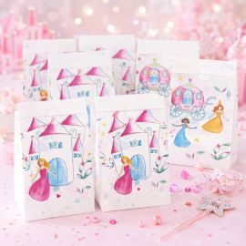 Design enchanteur : Les gobelets sont décorés avec des princesses, des couronnes et des éléments magiques, créant une ambiance féerique pour la fête.
