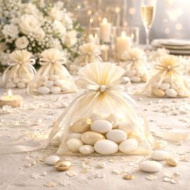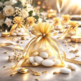 Polyvalence : Les sacs peuvent contenir des dragées, des bonbons ou d'autres petits cadeaux, offrant ainsi de nombreuses options de personnalisation.