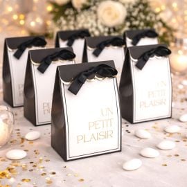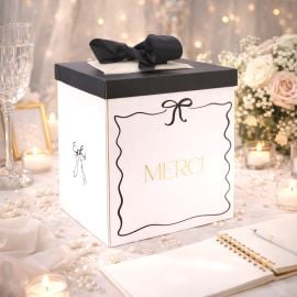 Sublimez votre décoration de table avec ce lot de 100 confettis Black & White avec nœuds satin noir, parfaits pour créer une ambiance chic et élégante lors de vos événements. Leur design raffiné mêlant noir, blanc et touches dorées, associé à de délicats nœuds satinés, apporte une finition haut de gamme à votre mise en scène.