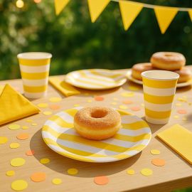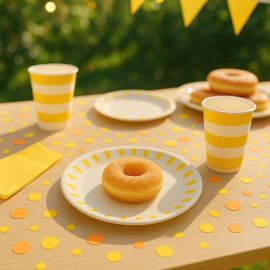Ces serviettes cocktail en papier jaunes et blanches 24 x 24 cm, au pliage 3 plis, insufflent une énergie vive et joyeuse à vos décorations de fête. Leur format compact est idéal pour accompagner apéritifs, cocktails, verrines, gourmandises et buffets colorés. Avec leur duo de couleurs éclatantes, elles apportent un charme frais qui s’accorde aussi bien à un anniversaire lumineux qu’à un mariage moderne ou une soirée estivale.