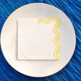 Serviettes cocktail papier jaune blanc 24x24 cm 3 plis déco fête pas cher badaboum.fr