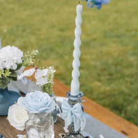 Coup de coeur sur ce lot de 2 Bougies flambeau torsadées vert de Gris, Illuminez votre table de réception avec nos bougies flambeaux torsadées