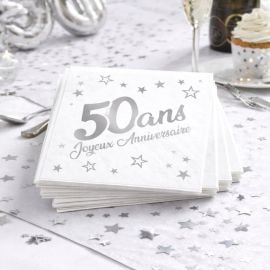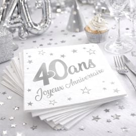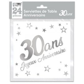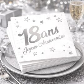 Les serviettes en papier joyeux anniversaire sont proposées en sachet de 24 avec une dimensions de 33 x 33 3 plis et de couleur Argent