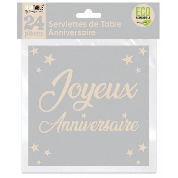 Les serviettes en papier joyeux anniversaire sont proposées en sachet de 24 avec une dimensions de 33 x 33 3 plis et de couleur grise