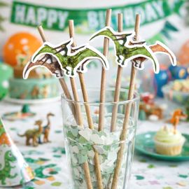Faites un bond dans le temps jusqu'à l'époque des dinosaures avec notre set de 6 bougies d'anniversaire. Chaque bougie est finement sculptée en forme de dinosaure, offrant une palette de couleurs vives et un détail saisissant qui apportera vie et amusement à tout gâteau d'anniversaire enfantin.