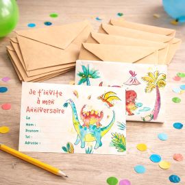 6 cartes d'invitation anniversaire Dinosaure 11 x 17 cm