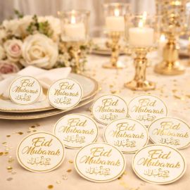 - Motif : Design élégant avec inscriptions "Eid Mubarak" en lettres arabes et latines