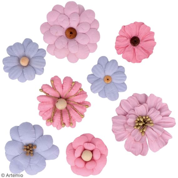 Choisissez la planche de 8 fleurs en papier Perles Lovely Swan, des fleurs a coler sur vos nombreux supports de loisirs créatifs et scrapbooking