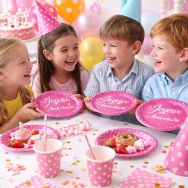 Idéales pour tous types de célébrations, de l'anniversaire surprise à la grande fête de famille, ces assiettes éco-responsables ajoutent une touche de couleur et de joie à votre table. Elles sont disponibles dès maintenant sur Badaboum.fr où vous pouvez également explorer notre gamme de produits pour anniversaires et trouver tout ce dont vous avez besoin pour une fête inoubliable.