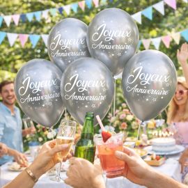 Style : Une teinte grise captivante rehaussée d'un élégant script "Joyeux Anniversaire".