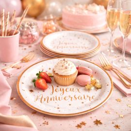 Coup de coeur sur ce lot de 6 Assiettes carton coeur rose gold, des assiettes jetables pas cher et originales pour votre décoration de table de mariage, baptême ou communion