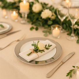 Vous pourrez accorder nos assiettes réutilisables avec notre large choix de vaisselle jetable en plastique : Verre a vin plastique, flute a champagne, couvert jetable..