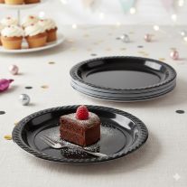 Vous pourrez accorder ces assiettes en plastique pas cher avec notre large choix de vaisselle jetable Bleu turquoise disponible sur notre boutique : Verre à vin plastique, Flûte champagne jetable, Couvert jetable , ou encore plateau en carton