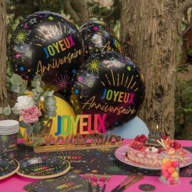 6 Assiettes cartons 17.5cm joyeux anniversaire Noir