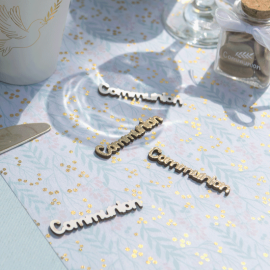 Mettez à l'honneur le parrain et la marraine lors de la communion ou du baptême avec nos badges communion exclusifs "Parrain Adoré" et "Marraine Adorée". En blanc immaculé avec des inscriptions dorées, ces badges de 5 cm de diamètre incarnent l'affection et la reconnaissance pour leur engagement spirituel. Ces accessoires raffinés sont des cadeaux parfaits pour célébrer et remercier les figures spirituelles choisies.
