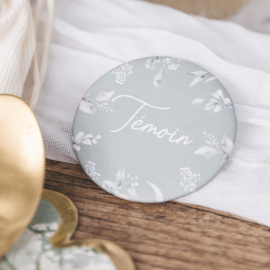 Ces badges "Demoiselle d'Honneur" de la collection "Greenery" apportent une touche naturelle et élégante aux tenues de mariage avec leur joli motif en vert de gris et blanc. Parfaits pour distinguer avec raffinement les demoiselles d'honneur, ces badges de 5 cm de diamètre s'intégreront parfaitement à la célébration de votre union.