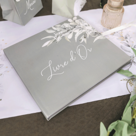 Palette de Couleurs Douces : Les tons vert de gris et blanc sont choisis pour leur élégance discrète et leur facilité à s'harmoniser avec n'importe quel thème de mariage.