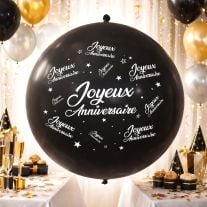 Ballon géant imprimé Joyeux anniversaire Blanc Ø 116 cm