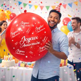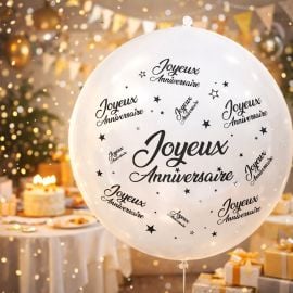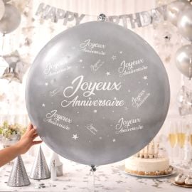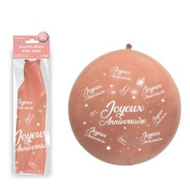 Ballon géant imprimé Joyeux anniversaire Fuschia Ø 116 cm