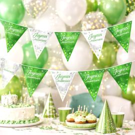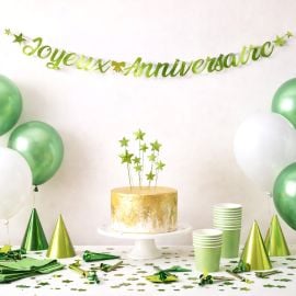 Design Festif: Vert anis avec des inscriptions "Joyeux Anniversaire" en blanc, il ajoute une touche élégante à tout espace.