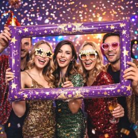 Ajoutez un élément unique et chic à votre photobooth mariage avec ce cadre doré en ballon. Facile à utiliser, il transforme instantanément vos photos en souvenirs dignes des plus belles fêtes. Associez-le avec des accessoires de déguisement, des masques ou des pancartes pour encore plus d’amusement.