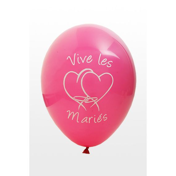 8 ballons Fuchsia translucide inscription Vive les mariés