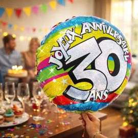 Disponible en lot de 8, ces ballons multicolores sont la touche parfaite pour un anniversaire pétillant. Pour un 30e anniversaire mémorable, optez pour nos ballons spéciaux, à découvrir sans plus attendre sur Badaboum.fr.