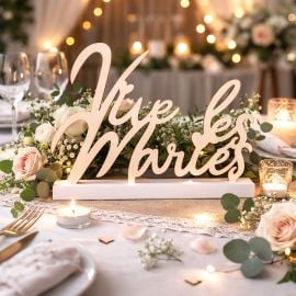 Éléments visuels : inscription “Vive les Mariés”, finition élégante