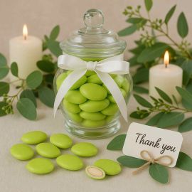 Contenance : La boite cube peut accueillir une dizaine de dragées ou une trentaine de dragées mini coeurs disponible sur notre boutique