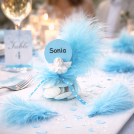 Magnifique la Boite a dragées en carton Bleu ciel a pois , elle sera parfaite pour votre décoration mariage en guise de cadeaux aux invités sur vos tables de fête