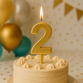 Avec son design luxueux et sa finition dorée éclatante, cette bougie capte la lumière et attire tous les regards sur votre gâteau. Équipée d’un socle en plastique pratique, elle s’insère facilement sur tout type de dessert sans risque de basculer.