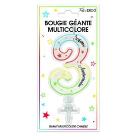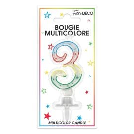 Bougie anniversaire multicolore - Chiffre 3