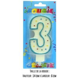Cette bougie anniversaire pas chère est l’élément idéal pour marquer les 3 ans de votre enfant ou célébrer une étape importante avec style. Associez-la avec nos autres accessoires de fête, comme des ballons colorés et une vaisselle assortie, pour un anniversaire fun et réussi sans exploser votre budget.