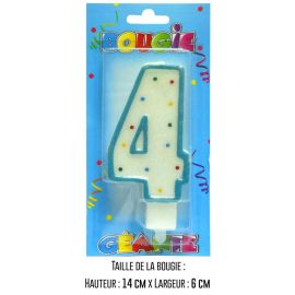 Cette bougie anniversaire pas chère est l’élément idéal pour marquer les 4 ans de votre enfant ou célébrer une étape importante avec style. Associez-la avec nos autres accessoires de fête, comme des ballons colorés et une vaisselle assortie, pour un anniversaire fun et réussi sans exploser votre budget.