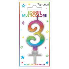 Bougie anniversaire Chiffre 3 Multicolore pailletée