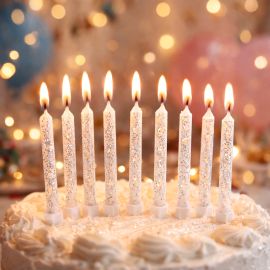 Illuminez vos fêtes avec nos bougies pailletées argentées, parfaites pour ajouter une touche de glamour à vos célébrations. Que ce soit pour un anniversaire, un mariage ou toute autre occasion spéciale, ces bougies apporteront une étincelle supplémentaire à votre événement.