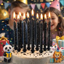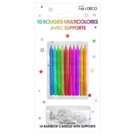 Conditionnement : Paquet de 10 bougies pailletées avec 10 supports