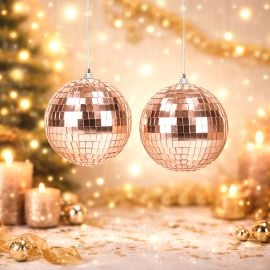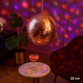 Ajoutez une touche rétro et glamour à vos soirées avec cette magnifique boule disco Rose Ø30cm. Ce miroir sphérique est idéal pour créer une ambiance années 70, disco ou festive. Fournie avec un kit de suspension, elle est prête à être accrochée pour illuminer votre piste de danse avec ses reflets dorés éclatants.