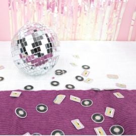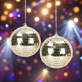Combinez cette boule disco avec des guirlandes iridescentes, des ballons colorés et un photobooth rétro pour une décoration réussie. Assurez-vous que l'éclairage ambiant permette de mettre en valeur les reflets dorés de la boule disco pour une atmosphère festive garantie.