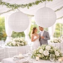 A l'intérieur de la boule papier lampion 50 cm glissez une petit guirlande éléctrique ou une de nos bougies Led pour une ambiance tamisée et accorder la à notre large choix de ballons gonflables pas cher pour un plus bel effet dans votre déco de salle