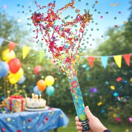 D’une simple rotation, il libère un nuage scintillant d’étoiles dorées et de confettis roses en forme de chat, idéal pour émerveiller petits et grands. Son système à air comprimé assure une utilisation sécurisée sans poudre ni explosif, pour une explosion de joie sans risque.