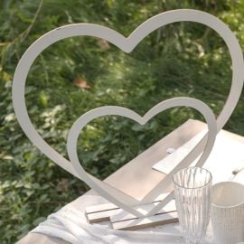 Sublimez vos tables de mariage avec ce centre de table décor cœurs blancs en bois, symbole intemporel de l'amour. Conçu dans un style épuré et romantique, il est parfait pour compléter une décoration champêtre, élégante ou minimaliste. Avec ses dimensions de 22 x 4 x 15.5 cm, ce centre de table repose sur un socle robuste, garantissant stabilité et esthétique. Ce magnifique accessoire saura attirer les regards et apporter une touche d'élégance à vos célébrations.