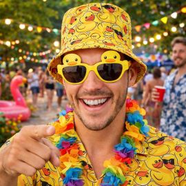 Et parce qu’un poisson rouge sur la tête, ça ne passe jamais inaperçu, ce chapeau prouve qu’en matière de déguisement, mieux vaut parfois nager à contre-courant.