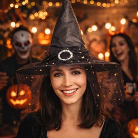 Devenez la sorcière la plus terrifiante de la soirée avec ce chapeau de sorcière Halloween décoré d’une toile d’araignée déchirée. Parfait pour un déguisement mystique et ensorcelant, il est idéal pour Halloween, un carnaval ou une fête à thème fantastique.