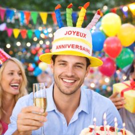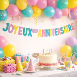 - Couleur : Naturel imprimé floqué Joyeux Anniversaire