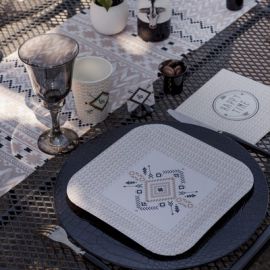 Marier le chemin de table ethnique avec nos housses de chaise, tentures, et nappes en papier