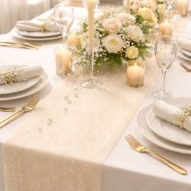 Sublimez votre décoration de table avec le Chemin de table gaze de coton Beige, un chemin de table en mousseline de qualité pour vos fêtes