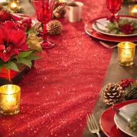 Découpez à la longueur voulue le chemin de table pailleté graçe à sa longueur de 5 mètres