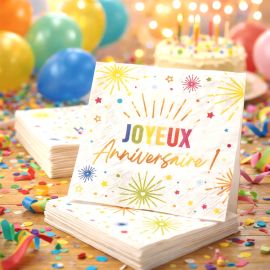Motif : Joyeux Anniversaire avec étoiles et feux d'artifice multicolores